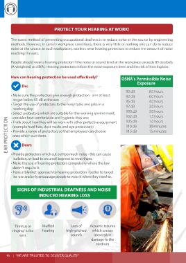 • Target the use of protectors to the noisy tasks and jobs in a 97 dB 3.0 hours